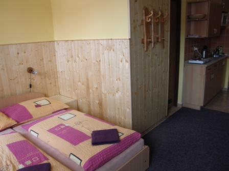 nové apartmány, maximální kapacita 14 lůžek (2x Třílůžkový apartmán, 1x Čtyřlůžkový apartmán, 1 x apartmán se dvěma pokoji)