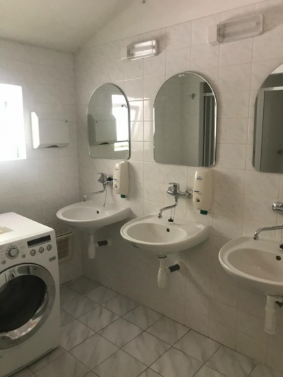 1/2+2 ložnice (1x dvoulůžko, 2x přistýlka - rozkládací křeslo, stolek, židle) apartmánek se dvěma průchozími ložnicemi 1/1+1 (1x samostatné lůžko, 1x přistýlka -rozkládací křeslo, stolek, židle) a 1/2+1 ložnice (1x dvoulůžko, 1x přistýlka - rozkládací křeslo), 1/2+2 ložnice (1x dvoulůžko, 2x přistýlka - rozkládací křeslo, stolek, židle). 1/2+2 ložnice (1x dvoulůžko, 2x přistýlka - rozkládací křeslo), 1/2+1 ložnice (1x dvoulůžko, 1x přistýlka - rozkládací křeslo, stolek, židle), koupelna (sprchový kout, umyvadlo), 2x samostatné WC s umyvadlem. K dispozici jsou na objektu zdarma k zapůjčení dvě dětské postýlky.
