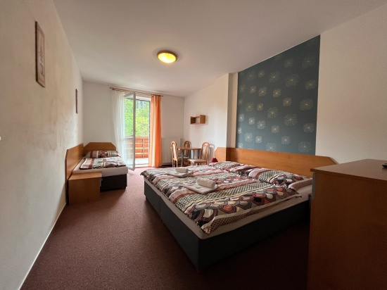 v blízkosti lyžařských sjezdovek, ca. 100 od objektu nový bazénový komplex (sauna, whirlpool, termální bazén - otevřen v hl. letní a zimní sezóně), salónek s kapacitou 30 míst vhodný pro semináře, školení, firemní, kulturní a společenské akce. Při pobytu 2 a více nocí 60 min. wellness zdarma