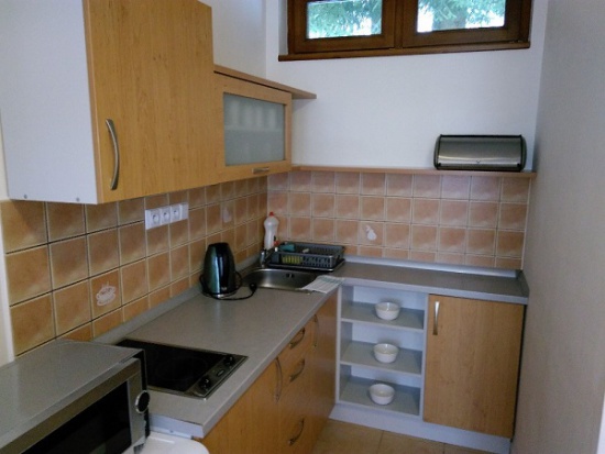moderně vybavené : 4 + 1 lůžkový apartmán ,3 + 1 lůžkový apartmán, 2 + 1 apartmán. V každém z apartmánů je kuchyňská linka, koupelna s vanou a WC, TV sat, předsíňka pro odkládání lyží.