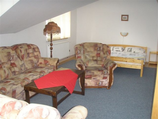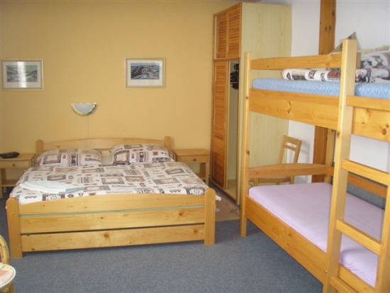11 pokojů: 7 x čtyřlůžkový pokoj a čtyři dvoulůžkové pokoje, každý pokoj WC, sprcha, SAT –TV, internetová siť na pokojích