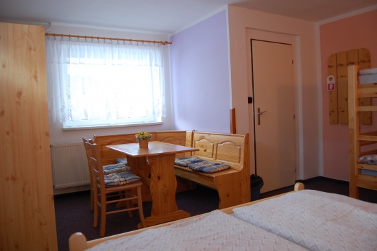 ubytování pro větší skupiny, pro menší počet osob jen delší pobyty. Penzion má celkovou kapacitu 17 lůžek celkem v 5ti pokojích. V privátu se nachází společenská místnost s TV/SAT, lyžárna a venkovní terasa.