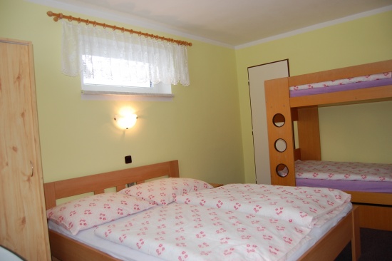 1x dvoulůžkový, 1x třílůžkový a 3x čtyřlůžkový pokoj. Pokoje ve spodním patře (2x čtyřlůžkový pokoj) mají každý vlastní sociální zařízení se sprchovým koutem. K dispozici pro tyto dva pokoje je vybavená společná kuchyňka a mají vlastní vchod. V horním patře jsou pokoje 1x dvoulůžkový, 1x třílůžkový a 1x čtyřlůžkový – tyto pokoje mají společné sociální zařízení a společnou vybavenou kuchyňku.
