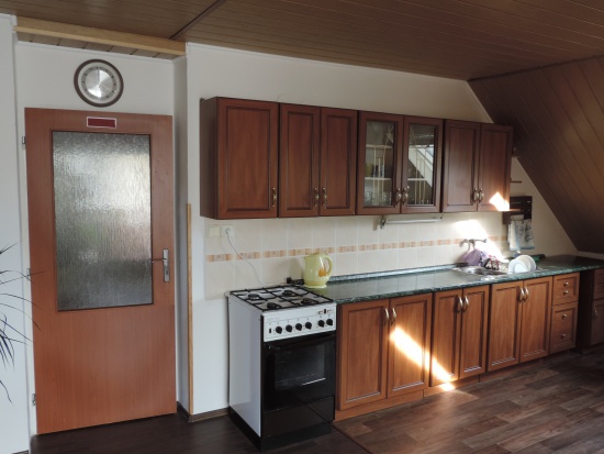 · Stravování: Vybavená kuchyň se dvouplotýnkovým vařičem, lednice rychlovarnou konvicí, mikrovlnnou troubou a nádobím.