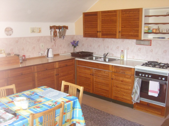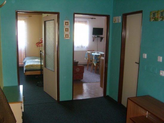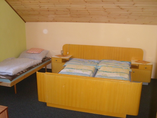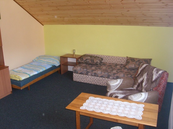 ubytování v prvním patře rodinného domu pro max. 7 osob, 1 x třílůžkový pokoj, obývací pokoj se 2 pevnými lůžky + 2 přistýlky ( rozkládací křesla ), kuchyň s rozkládacím gaučem pro 2 osoby, koupelna ( WC + vana )