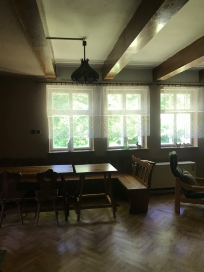 - Esszimmer (Holzbänke, Tische und Stühle)