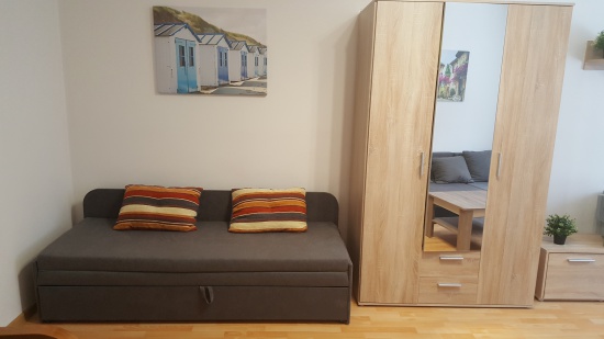 for 2 to 4 persons with a double bed and a sofa bed, TV / Satellite, shower WC, equipped kitchen with fridge and electric stove.