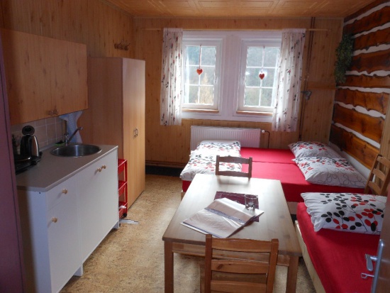 Differet kinds of rooms from double-beds rooms to four-beds rooms with bathroom (shower and WC) and in the winter has every room own ski-box.
