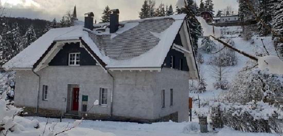 in a quiet location, about 100 m from the town center and the spa colonnade. It takes 800 m to the the cable car to Černá hora. There you can start your hiking in the summer and enjoy a lot of skiing in the winter. In the main winter season the skibus (free of charge) runs to the ski resort. It stops about 100 m away, every 30 minutes)