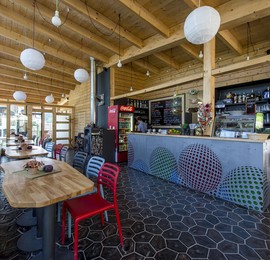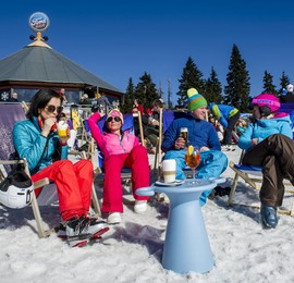 A bar with a sunny terrace and deckchairs offers a wide range of hot and cold drinks, pannini, soups and homemade desserts ideal with coffee. If the weather permits, the Ice bar is open as well as the outside terrace. Favourite drinks such as the genuine Italian Bombardino, Hot Finlandia or chocolate with rum will keep you warm. FordBar on Černá hora is a place to relax and enjoy yourself.