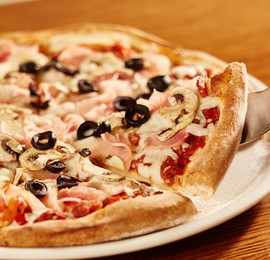 A stand with home-made pizza in authentic Italian style. Take-away pizza available as well.